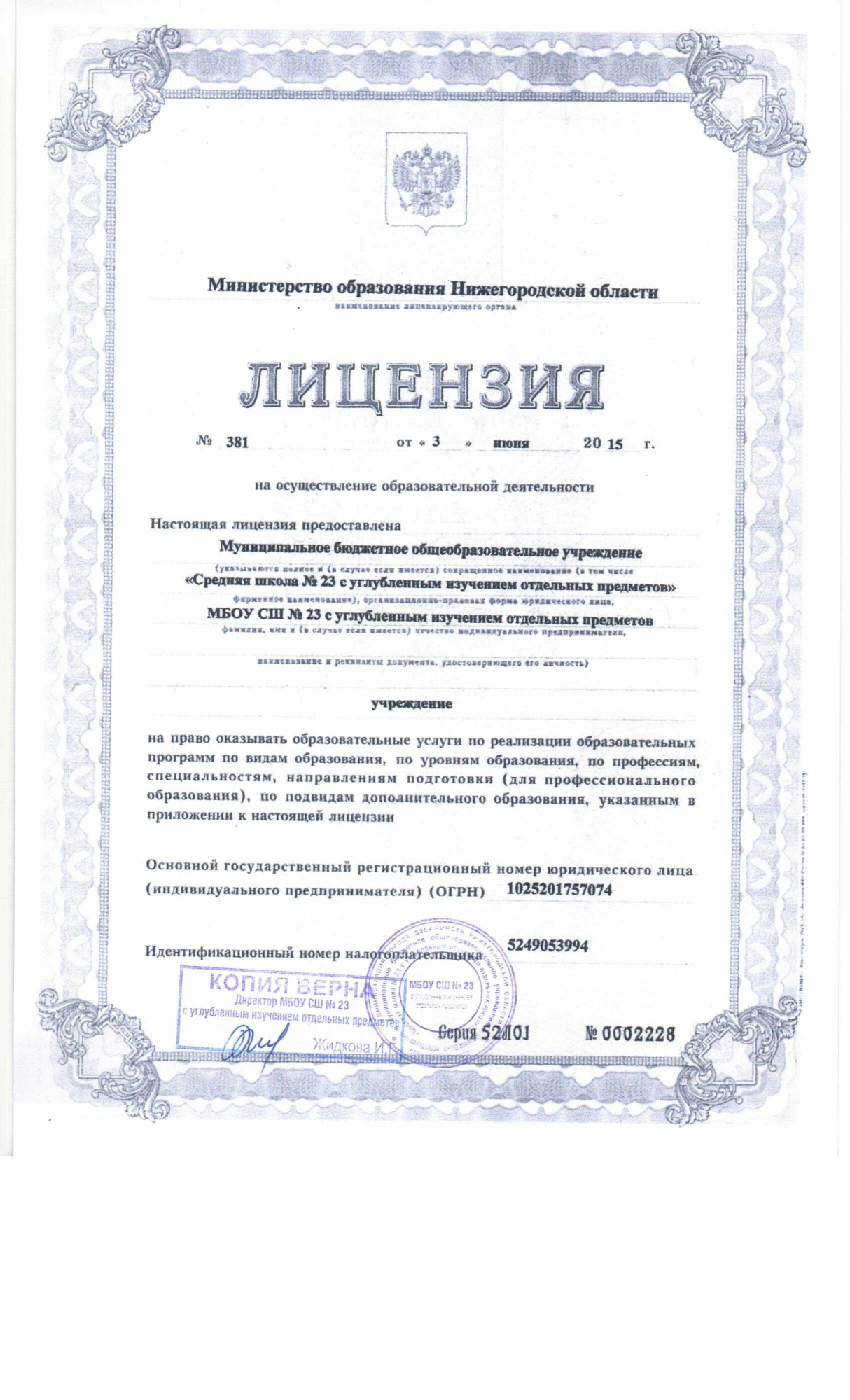 - 1.Лицензия на осуществление образовательной деятельности