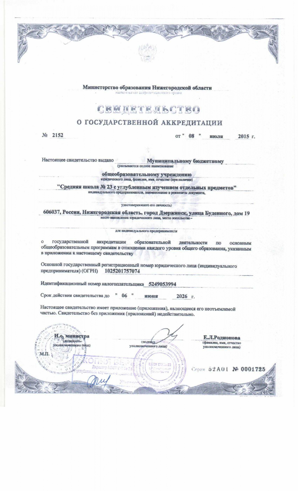 - Адрес:606037, Дзержинск, Буденного улица, 19